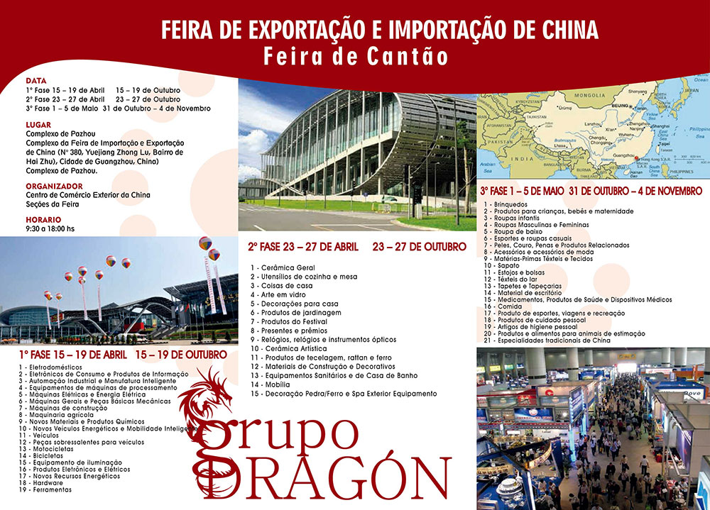 Co-patrocinada pelo Ministerio do Comércio da República Popular da China e do Governo Popular da Província de Guangdong e organizada pelo Centro de Comércio Exterior da China, a Cantão Feira é a exposição nacional da China. As autoridades de várias gerações do Partido e do Estado têm dado toda a atenção e apoio na fundação e desenvolvimento. Sucessivamente os primeiros ministros do Conselho de Estado do Governo chinês inspecionaram muitas vezes. A Feira de Cantão é a maior exposição na China. A área de exposição total excede de 1.120 mil metros quadrados, com um total de mais de 55.000 locais. No último volume do comércio justo foi 26.230 milhões de dólares (negócios de exportação e importação) com 165. 436 compradores estrangeiros. Combinando as vantagens tradicionais de exposições em geral com as tendências modernas de exposições monográficas, a Feira de Cantão tem um grande e completo espectro de produtos, mais de 150 mil variedades de produtos do país, que incluem produtos tradicionais da indústria leve e vantajosas, têxteis e vestuário, produtos mecânicos e elétricos de alta tecnologia e alto valor agregado e dá prioridade para assegurar a participação dos exportadores de produtos de marca e os produtos de marca na exposição. Compradores da Feira vêm de todo o mundo. 200.000 amigos de diferentes nacionalidades, diferentes culturas e diferentes crenças reunir-se na primavera e no outono a cada ano em Guangzhou para trocar informações e compra de produtos. Dos 250 varejistas maiores do mundo têm seus enviados cerca de 150 compradores na feira. Exposições na China, é a Feira de Cantão, que funciona melhor em transação. O volume de transações nas duas sessões do ano ultrapassa 69.000 milhões de dólares, o que é por isso que tem sido chamado de "barômetro" ou "cata-vento" do comércio exterior do país.